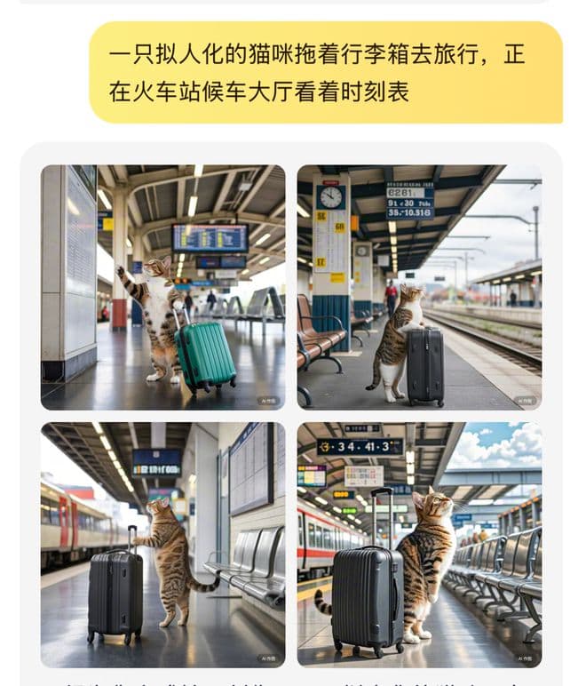 在演讲中,他例举了大众揽巡汽车飞越长城、爱因斯坦游遍全世界等文生图片来印证,iRAG整体效果远远超过文生图的原生系统,去掉了机器味儿。