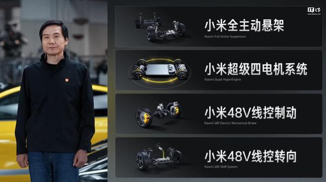 小米全主动悬架小米超级四电机系统小米 48V 线控制动小米 48V 线控转向