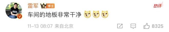 雷军也是很有幽默感的回应:"车间的地板很干净。"
