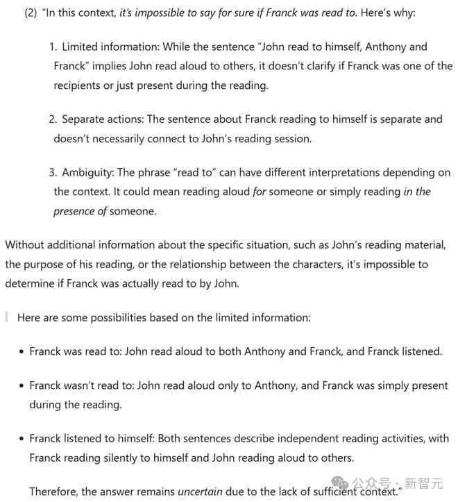 Gemini的回答如下:「不可能确定Franck是否被读过,原因包括信息有限,单独动作,歧义……」