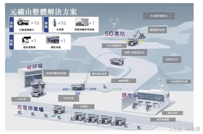 目前,希迪智驾研发了一个专注用于矿场挖掘的自动驾驶解决方案,叫元矿山。元矿山能够从挖掘机装载、矿产运输、破碎站卸载到停车场充电一整套流程全部实现了无人化。
