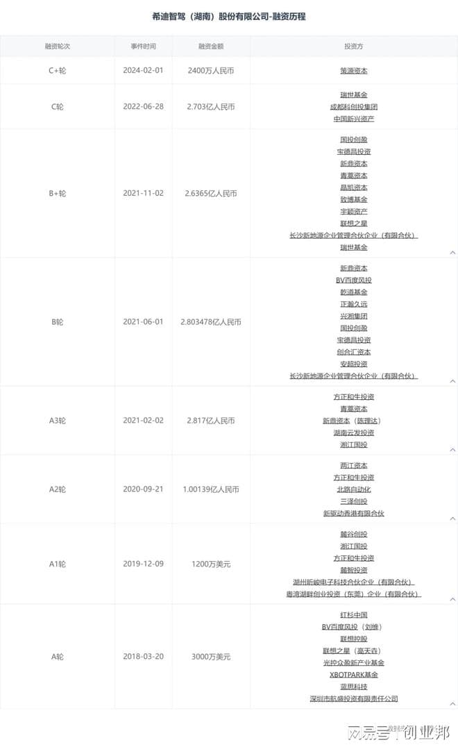 希迪智驾在发展过程中也获得了众多资本的青睐。