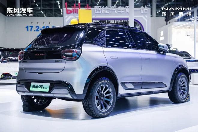 IT之家从官方获悉,东风纳米还在此次车展上发布了基于现款纳米 01 打造的新车型 —— 纳米 01 Cross。新车前大灯在现有灯型基础上扩展了点阵式灯幕,前脸大面积的竖向进气格栅和镀铬装饰增加了车头的力量感和攻击性。此外,该车还配备了 AT 轮胎、行李架、探照灯等装备。同时,全车拥有黑色包围的裙边,显得更具视觉层次感。