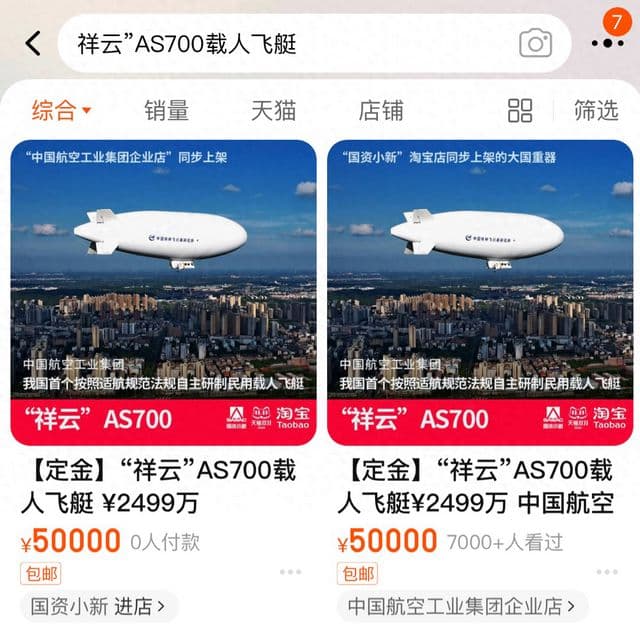 它就是我国自主研制的“祥云”AS700载人飞艇。此款产品刚上架不久,就有网友发现页面显示“已售出”。作为下单客户之一的荆门城控集团旗下的文旅公司表示,“优惠力度超百万前所未有,很难控制不当‘剁手党’。”