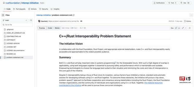 Rust基金会现已在 GitHub 发布报告(点此访问)宣布他们在C++和Rust互操作性方面取得的进展,报告指出 Rust基金会当前的目标是不断提升 Rust 本身的功能、解决短期技术挑战,从而为实现长期的互操作性奠定基础。