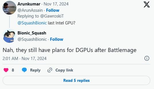 但是根据最新确切消息,至少在Battlemage二代之后,Intel依然会继续做独立显卡,也就是代号Celestial的第三代。