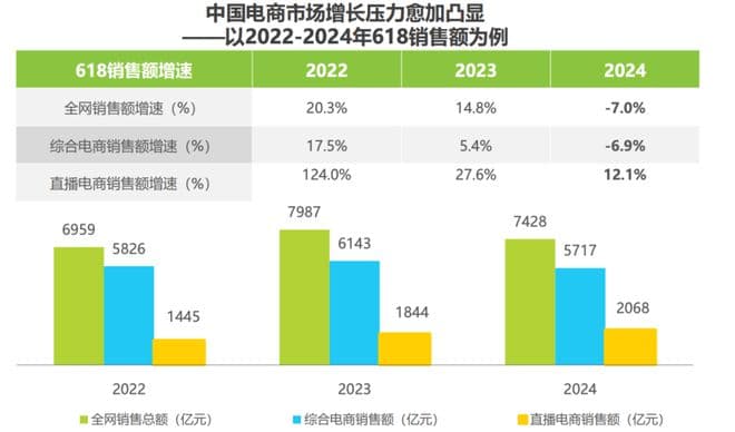如下图所示,艾瑞咨询数据显示,今年618期间,从销售额增速来看,电商市场增长压力在持续显现。