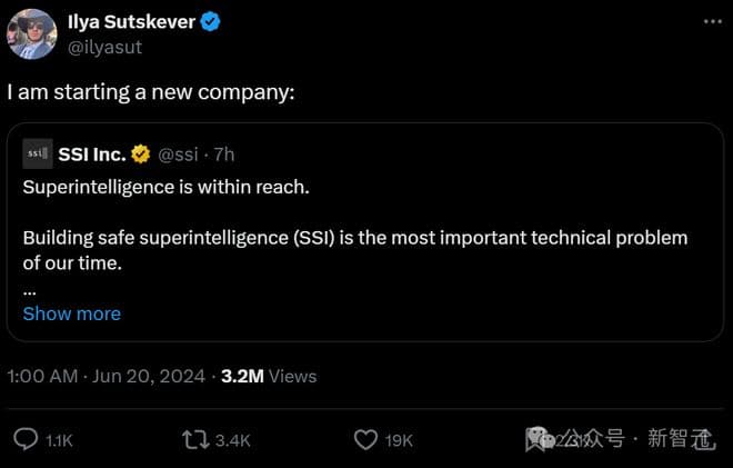 今年5月,Ilya Sutskever突然官宣离职,并在消失的一个月后,对外公布了成立的新公司「安全超级智能」(SSI)。