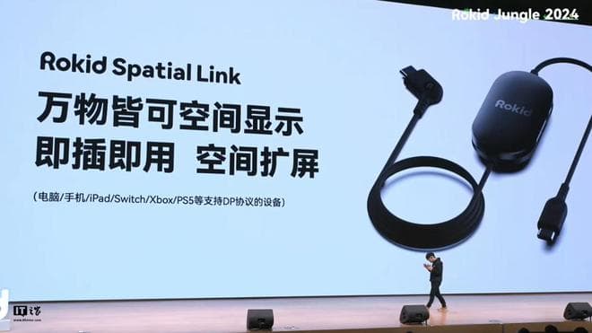 IT之家从发布会获悉,Rokid Spatial Link 支持电脑 / 手机 / iPad / Switch / Xbox / PS5 等支持 DP 协议的设备,定价 699 元,将于 2025 年第二季度上市开售。