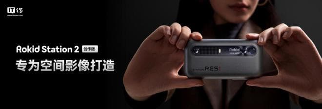 Rokid 今日还发布了 Station 2 创作版,该设备是一款终端设备,可搭配 AR 眼镜使用。该设备增加了 2 颗空间摄像头,可以用于空间照片和空间视频的拍摄。