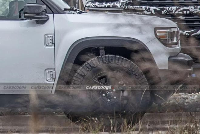 IT之家附上曝光的路测图如上,Recon 继承了 Jeep 标志性的硬派越野风格,包括可拆卸车门、外露铰链、亮蓝色拖钩,以及粗犷的 17 英寸 Nexen Roadian ATX 全地形轮胎和尾门上的全尺寸备胎,无不彰显其强大的越野实力。