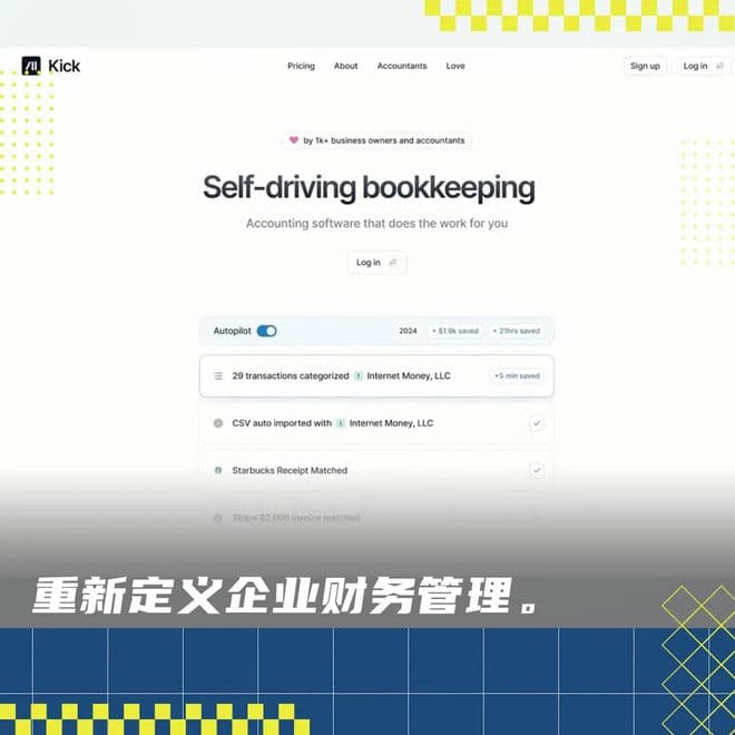 Kick 给自己的定位是「Self-driving bookkeeping」。“Bookkeeping”的中文意思是“簿记“,也就是记录和分类企业财务交易的过程,包括收入、支出、资产和负债等信息。通过簿记,企业能够系统地追踪财务状况,为税务申报提供准确的数据支持,帮助了解经营成果并做出更明智的决策。