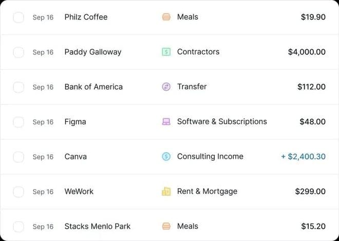 多账户整合:支持同时连接企业和个人账户,兼容Stripe等支付工具。Kick能够通过AI智能处理混合交易,自动识别出业务相关的支出(如订阅、餐饮、差旅、办公费用等),帮助用户合理获得税务扣除。