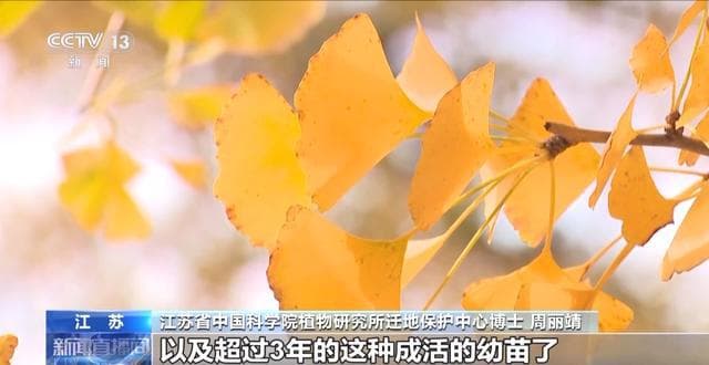 江苏省中国科学院植物研究所迁地保护中心博士 周丽靖:据科学家们观测,目前这种野生的银杏大树,目前已经有10年没有观测到天然更新的幼树,以及超过3年的这种成活的幼苗了。保护银杏的野生种群及其种质资源,对我们来说依旧任重而道远。