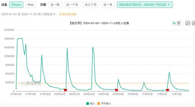 图注:《绝区零》在iPhone端预估营收的趋势图。数据来源:七麦数据