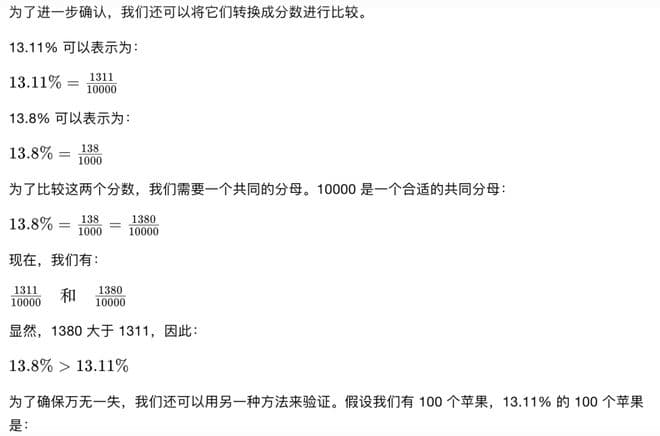 像世超一上来,就直戳 Kimi 痛处翻了波旧账,问它 “13.11% 和 13.8% ,哪个更大? ” 。(之前 Kimi 在这上面翻过车,说 13.11 的整数部分和小数部分都大于 13.8 。。 )