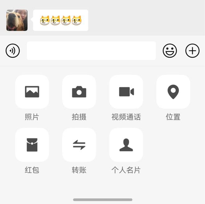 不光把发红包、转账和发送定位的功能给补齐了,之前聊天框里的图片不能转发的问题也给解决了,就连个人名片现在也有了。