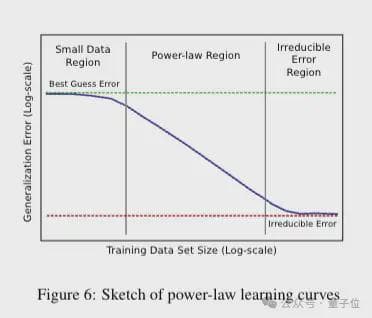 泛化误差(模型在新数据上的表现误差)与训练集大小呈现幂律关系,即随着训练集的增大,泛化误差会以一定的幂次下降。