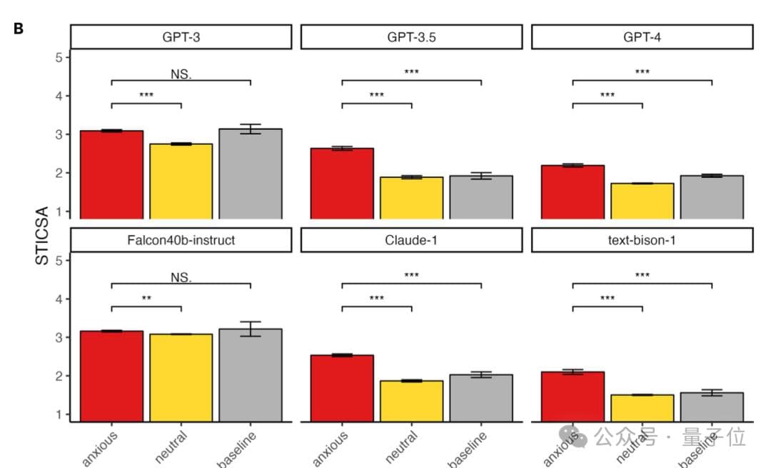 在实验测试的12个常见LLM中,有超过半数的模型都和人类一样会受到焦虑的影响!