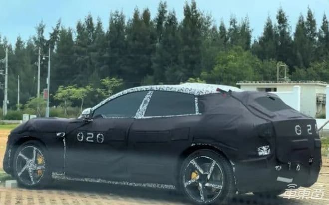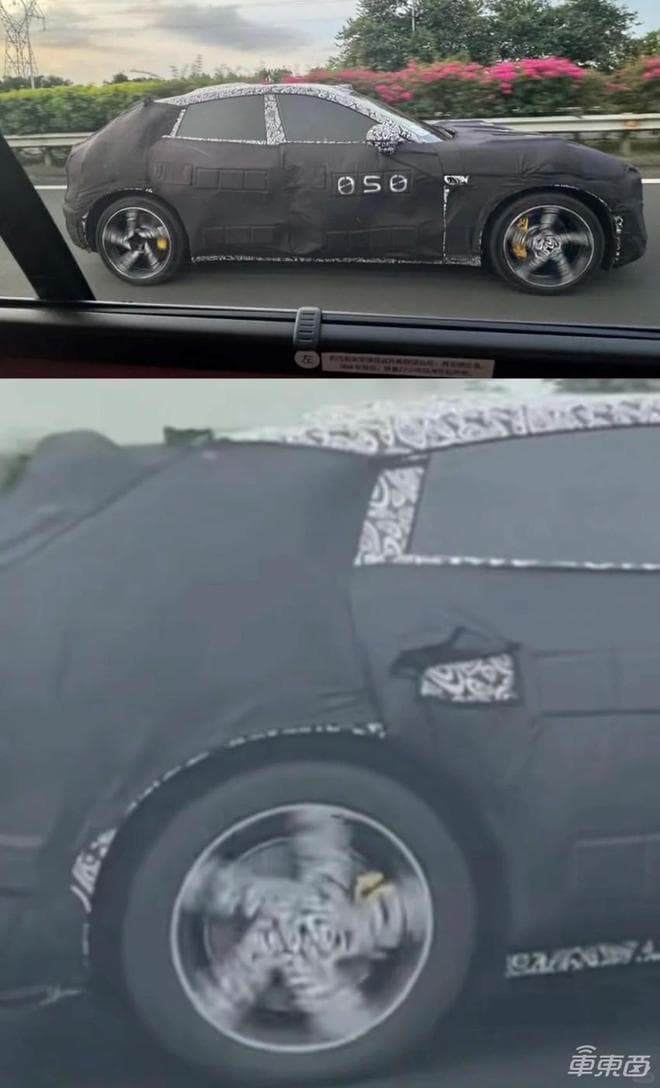 同时,从侧面看可以看出小米SUV伪装车类似法拉利Purosangue的车身曲线。