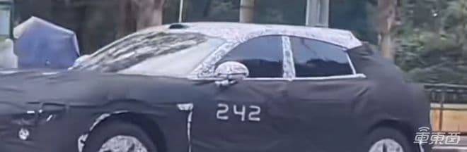 从这组谍照中可以看出小米SUV伪装车类似法拉利Purosangue的车身曲线,同时可以看到车顶有激光雷达。