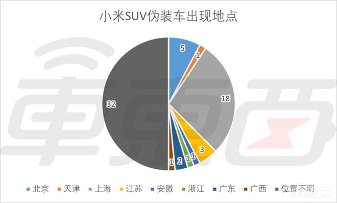 可以看到,如果排除出现位置不明的谍照,无论是从发帖人IP位置还是可用确认的位置,上海市均为小米SUV伪装车出现次数最多的地点,有多位上海市网友发帖表示目击到了小米SUV伪装车,说明上海市可能是小米SUV测试的主要地点。