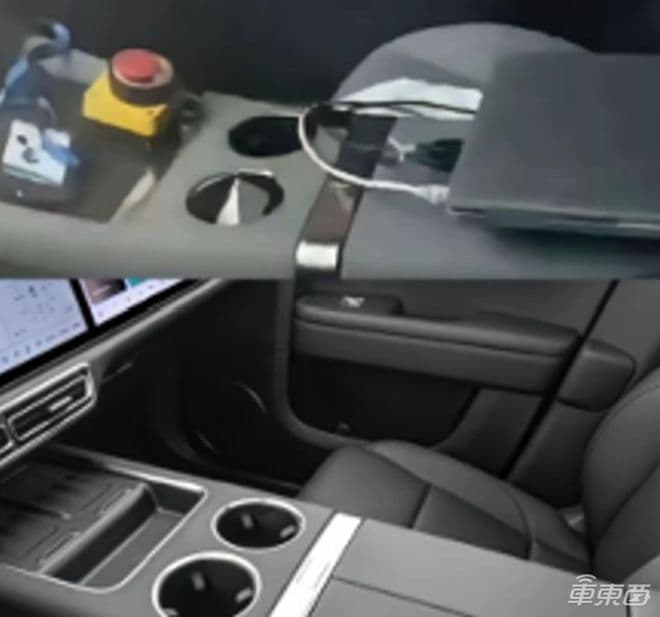 ▲小米SUV伪装车前排内饰(上)与理想L6前排内饰(下)对比