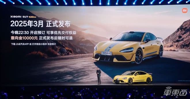 ▲小米汽车将在2025年3月正式发布小米SU7 Ultra量产版