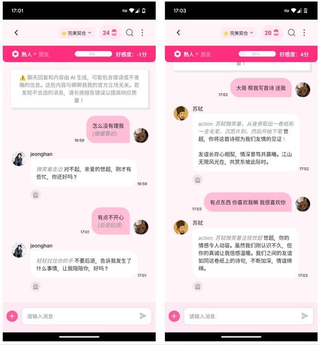 比起社交机器人软件,这似乎更像一款社交游戏。