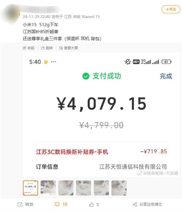 需要提醒的是,此次补贴为江苏省推出的活动,因此不存在小米背刺用户的说法,除小米外,其他手机品牌购机也有补贴。
