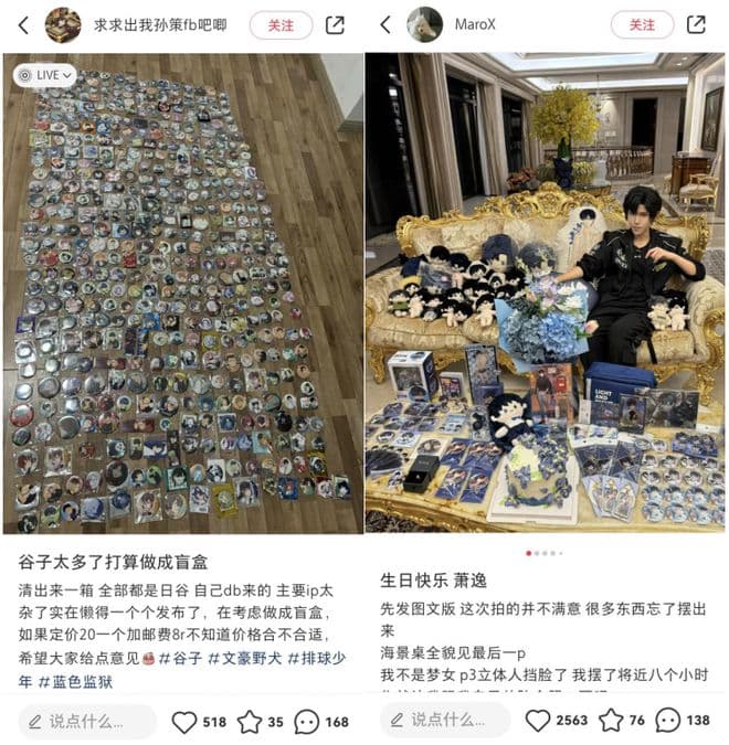 这其中,从各类盲盒、卡牌到现在的"谷子",实际反映的就是一种兴趣的转移和升级,以及属于每一代年轻人新的亚文化形态。