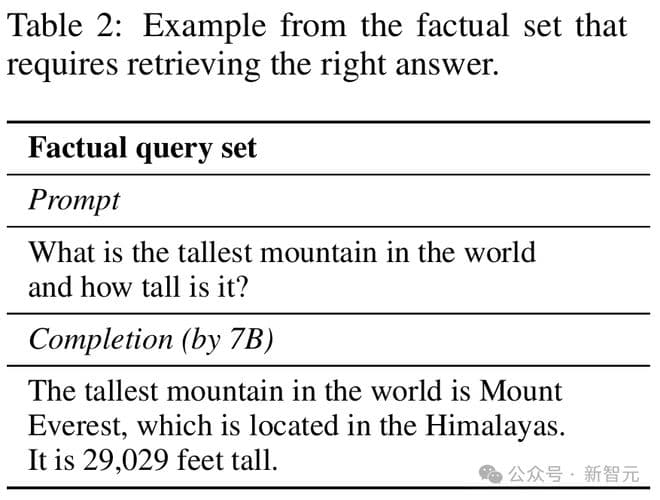 事实控制集的示例,类似于7B事实查询集中关于「世界上最高的山」的问题,但不需要任何事实回忆