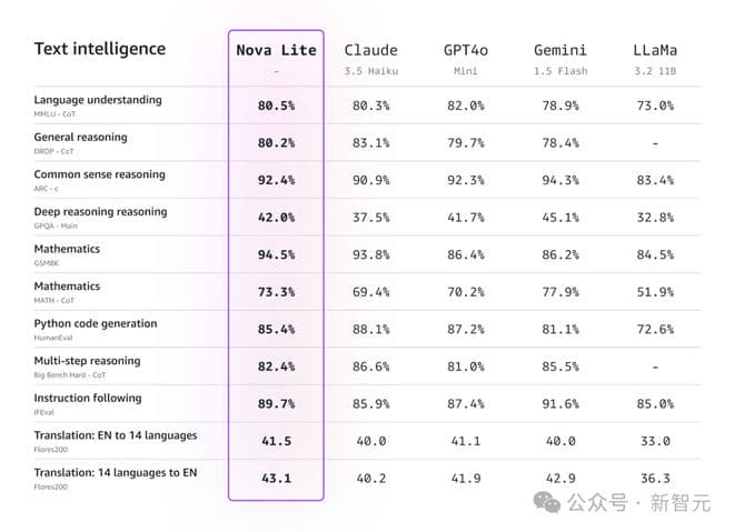 相较之下,Nova Lite和Nova Micro,就要比同级竞品差上不少了。