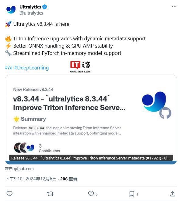 截至IT之家发稿为止,Ultralytics 公司并未发布正式的安全公告,不过该公司已迅速响应,移除了 2 个受影响版本并发布了新版。