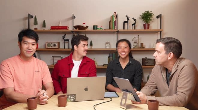 OpenAI高级副总裁Mark Chen(左一)等正在进行直播发布 官网截图