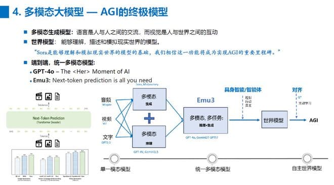 我的第四点观察是,多模态生成大模型是AGI(通用人工智能)的终极模型。