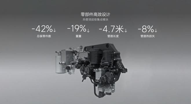 不过增加系统冗余度的同时,也势必会带来零部件复杂度、整车重量的增加,这也是需要克服的问题,因此,理想汽车还对零部件做了高效设计,减少热管理系统本身的热耗散。理想 MEGA 的热管理集成模块,将泵、阀、换热器等 16 个主要功能部件集成在一起,大幅减少零部件数量,管路长度减少 4.7 米,管路热损失减少 8%,这也是行业首款满足 5C 超充功能的集成模块。