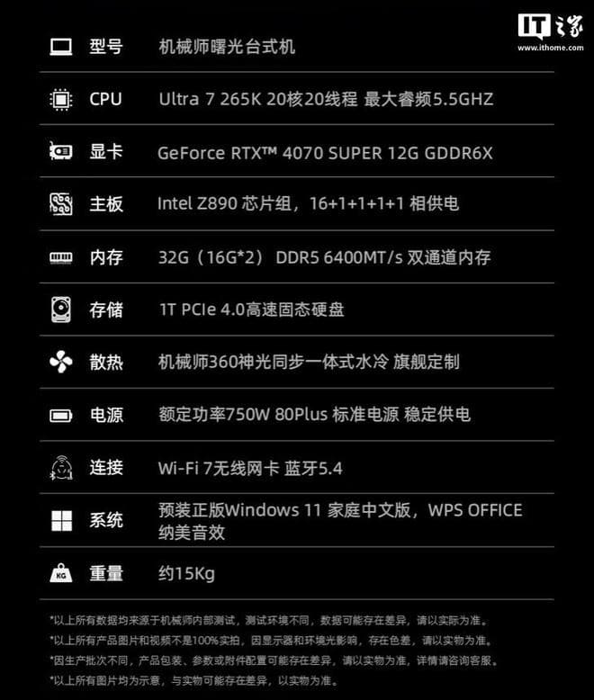 IT之家 12 月 8 日消息,机械师宣布旗下曙光专业水冷电竞主机“Ultra 7 265K + 32GB RAM + 1TB存储空间+ RTX4070S”配置现已正式开售,定价为15699元,官方称补贴后到手价13699元。