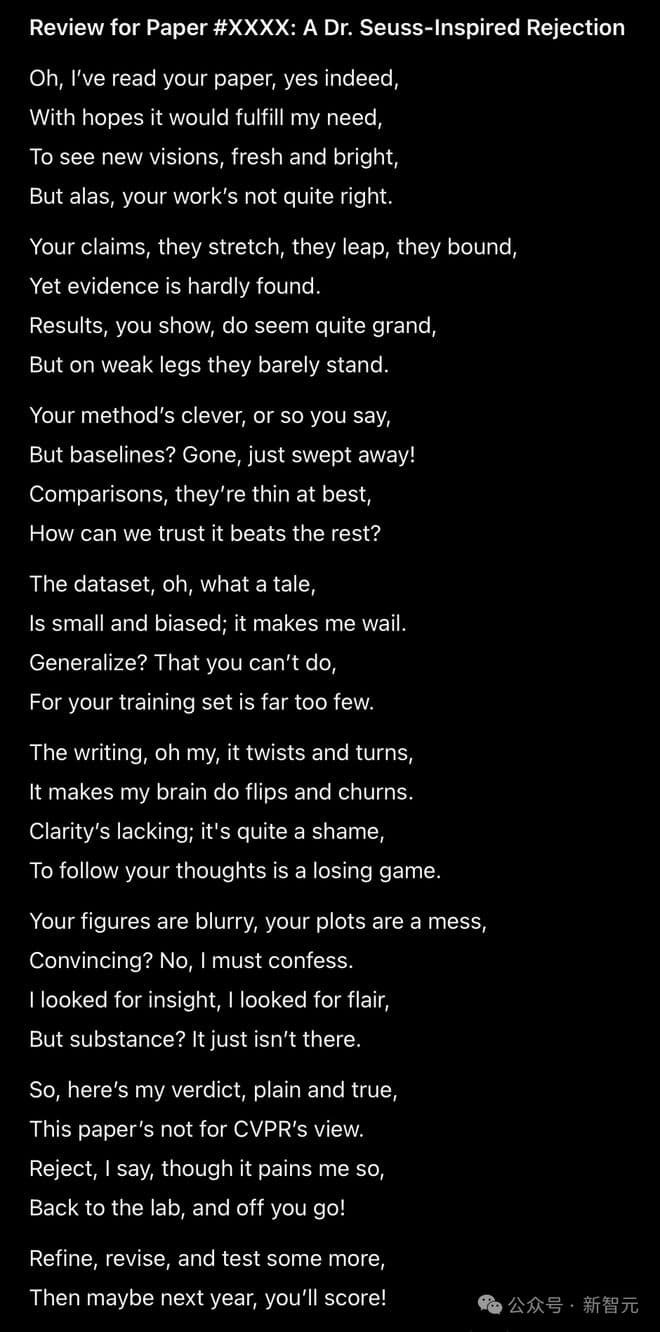 搞笑的,CVPR直接附上了用LLM作了一篇拒稿的小诗的离谱案例。(手动狗头)