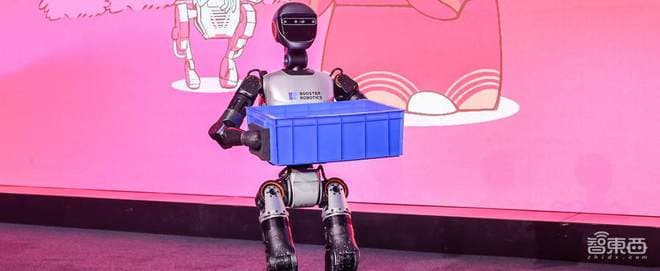 加速进化展出了专为开发者打造的人形机器人——Booster T1。这款机器人具备一定的身体协调性,能够流畅、自然地完成踢球、俯卧撑、叶问蹲等复杂动作,还在前阵子参加过人形机器人国际会议并在竞速赛和避障开门赛获得第一名。