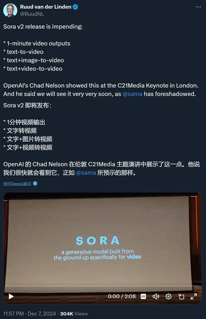接下来,大家可以期待一下 OpenAI 即将要发布的内容,你认为新版 Sora 会来吗?
