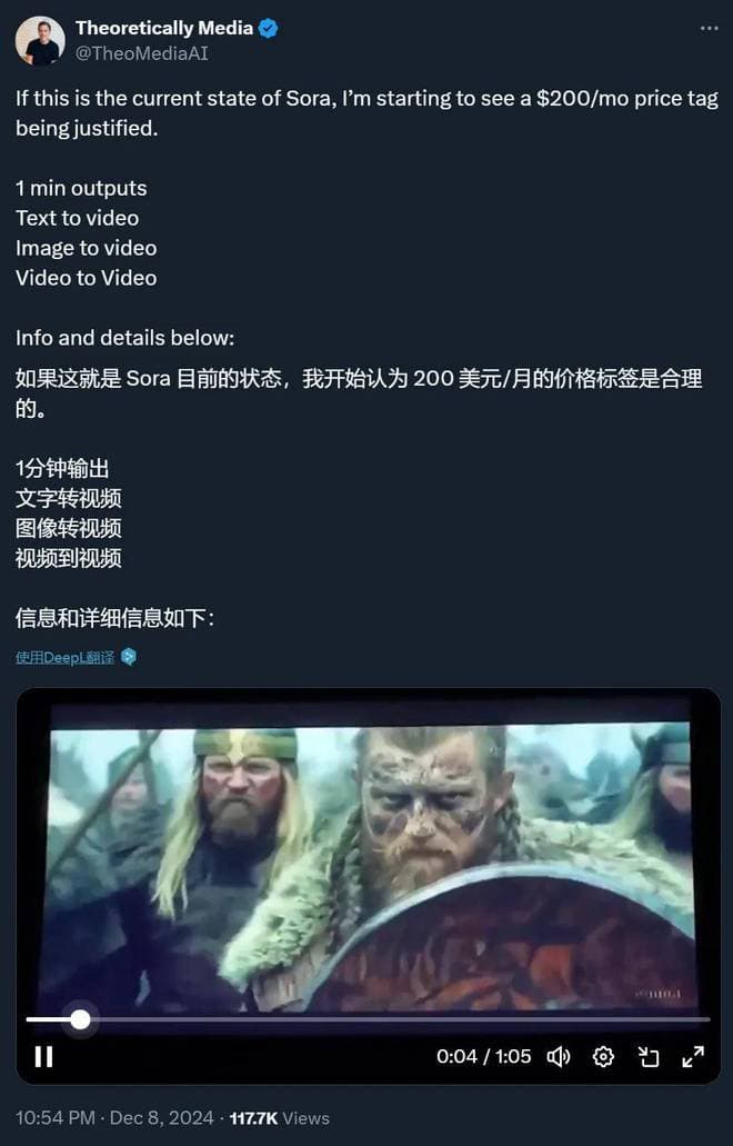 如果 ChatGPT Pro 那 200 美元的订阅费用里包含 Sora,可能这个费用看起来就没有那么离谱了。