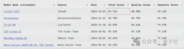 这个突然杀出来的模型,就是中国电信人工智能研究院(TeleAI)刚刚发布的视频大模型(VBench上的代号为TeleAI-VAST)。