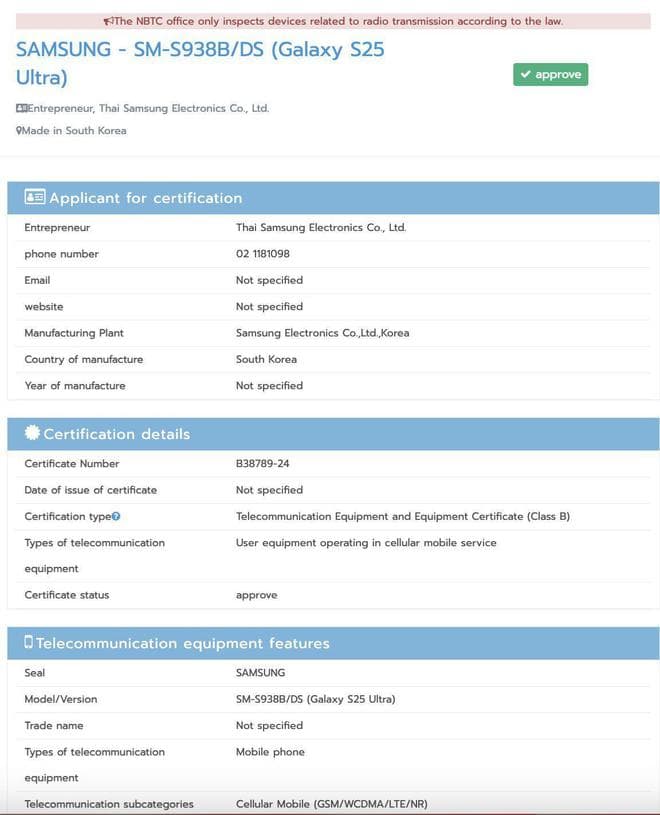 IT之家 12 月 10 日消息,美版三星 Galaxy S25 Ultra 手机现身 Camera FV 5 数据库,型号为 SM-S938U,该机预估配备 2 亿像素主摄,高通骁龙 8 至尊版 for Galaxy 芯片。