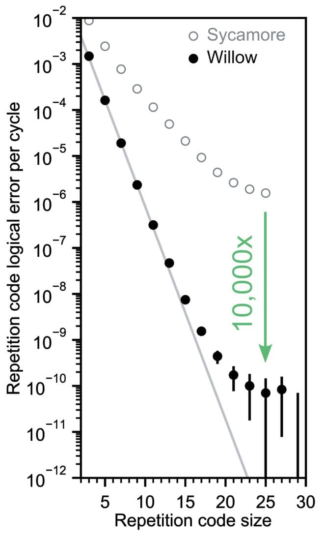 由此,Willow得以实现上述出色的逻辑误差抑制能力。