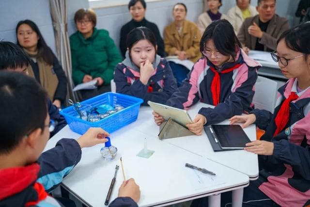 在由求真中学教师陈韡婷和求真南校教师钱凤娇共同执教的化学同侪课上,当学生提出实验困惑时,AI助教没有直接给出答案,而是通过系列启发式问题,引导学生有针对性地反思实验过程,自主提出改进思路。