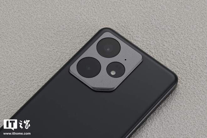 真我 Neo7 带来了星舰版、陨石黑、潜航三款配色,此次实拍配色为“陨石黑”,通体哑光磨砂质感,镜头圈、Deco 倒角配有亮色倒角线装饰,深邃而不沉闷。