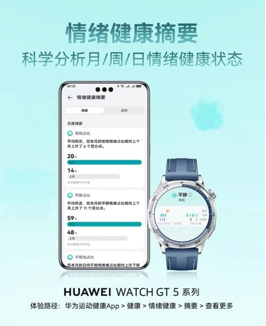 华为WatchGT 5新功能上线:每天情绪一目了然