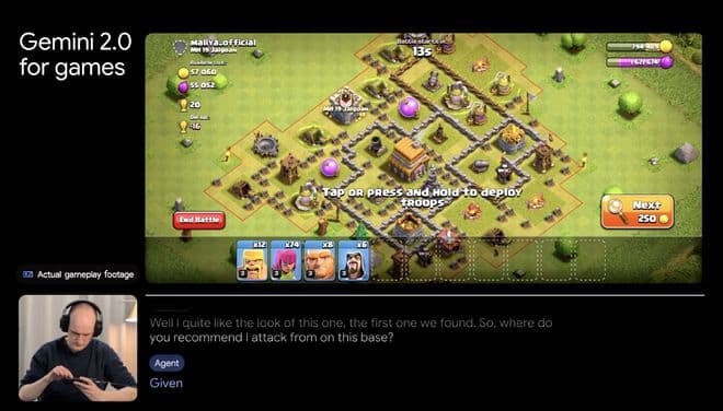 谷歌还在博客最后介绍了游戏和其他领域的智能体。就在上周,谷歌刚刚推出了世界基础模型 Genie 2,这是一个可以从单个图像创建无限3D 世界的 AI 模型。基于此,谷歌使用 Gemini 2.0 构建了智能体,可以帮助用户在电子游戏中做出更好的决策。谷歌称,这些游戏智能体可以根据屏幕上的实时画面,分析游戏情况,并为用户提供下一步的行动建议。