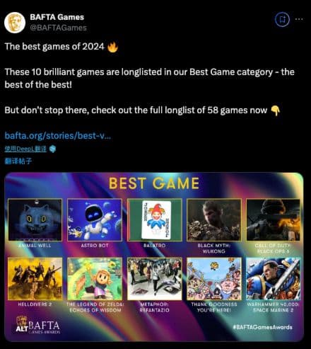 12 月 11 日,英国电影电视艺术学院奖的官方账号,公布了2024 年度各奖项的提名作品名单。